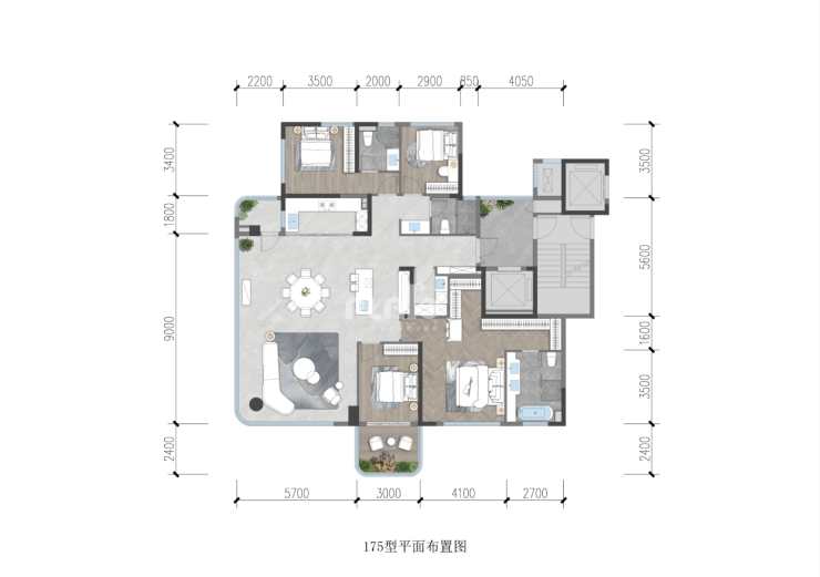 建面约175平套四