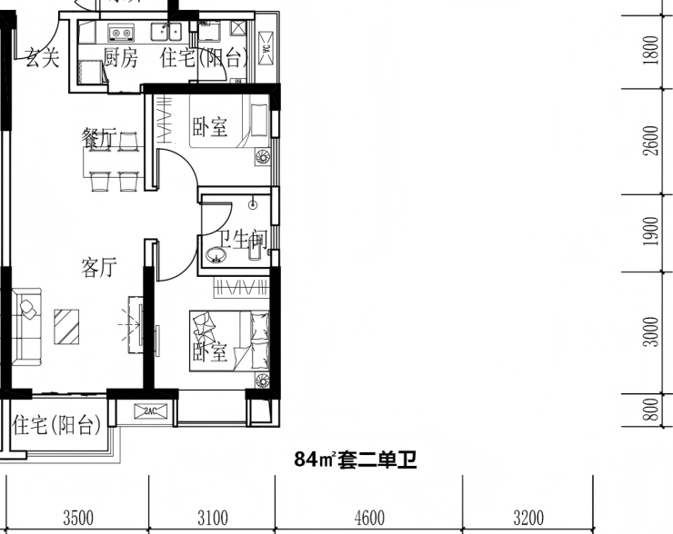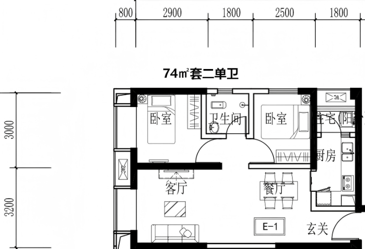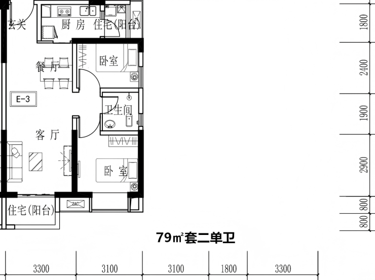 【面积】74㎡79㎡84㎡(套二单卫)、99㎡104㎡(套三单卫)、108㎡119㎡(套三双卫)