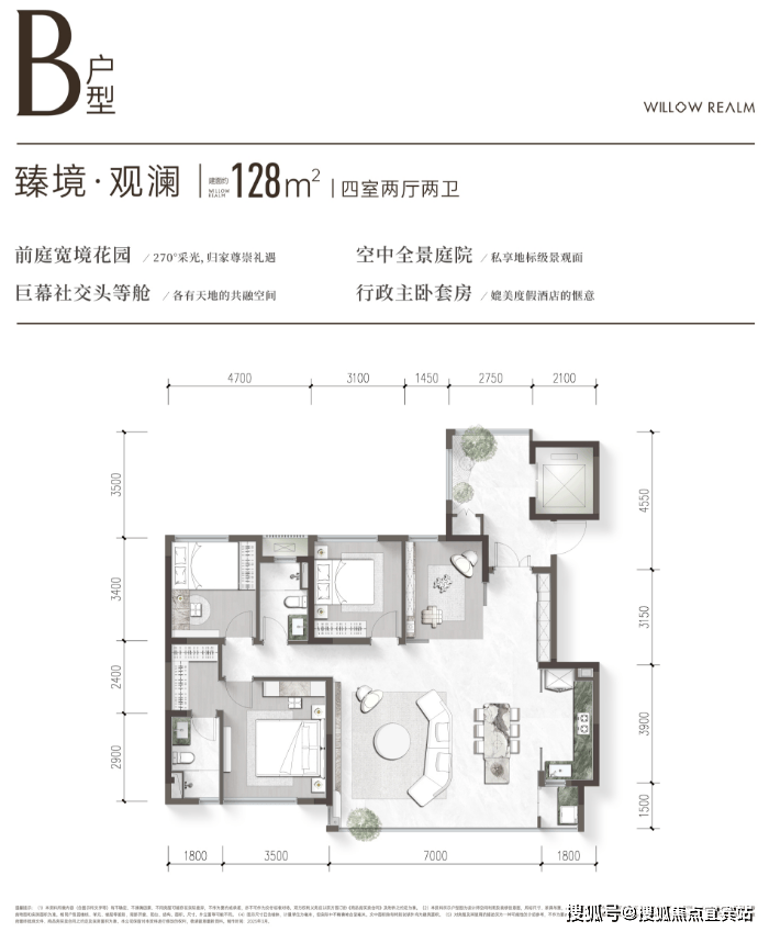 建面约128平套四
