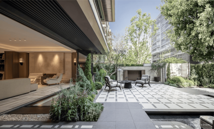 双叠设计以三大独立体系(归家动线/私梯入户/地下空间)与三重入户流线(花园-玄关-车库),在5层3户的行业常态中开辟出独栋级居住体验,实现疏朗布局的奢侈。