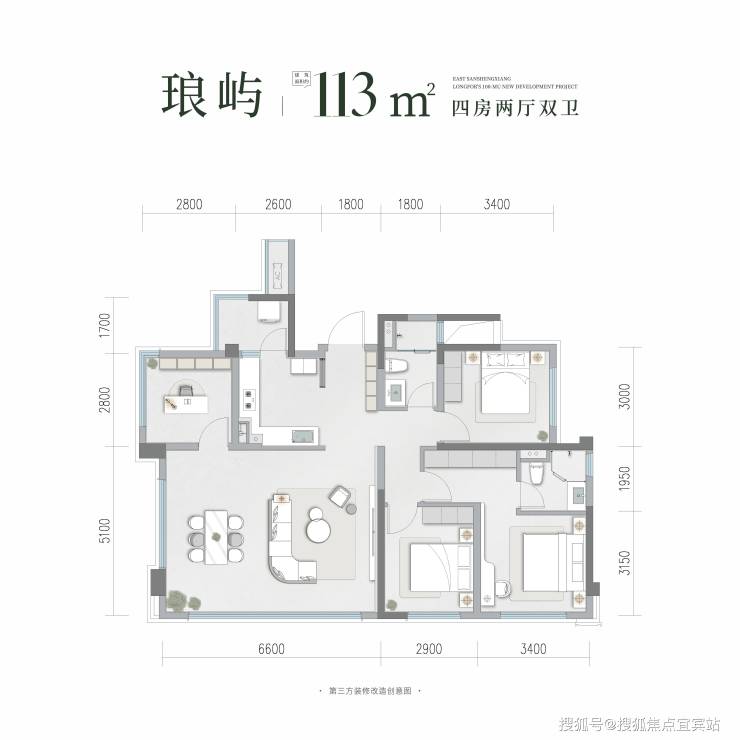 建面约113平套四