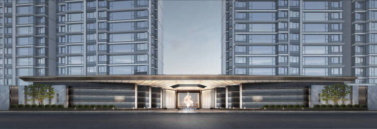 约66m奢尺门庭排场,6.5m超高挑高,透光云石大顶1660片奢石打造的铂金钻奢石墙、钻石艺术装置落客环岛,开启一次关于家的璀璨抵达