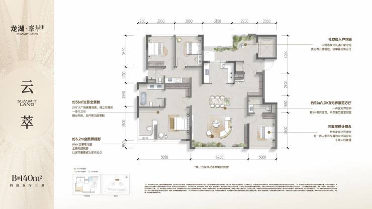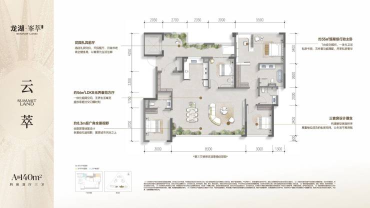 140㎡ : 总价480-500万 装标4000元 得房率120%