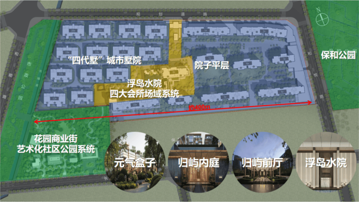 华润置地·天宸上院在约72亩的土地上,利用天然坡地高差,完美结合新规,巧妙利用宗地南向约400米超大面宽,采用沿地块东西向高低分区布置手法,结合宗地东西两侧艺术化公园绿地景观,打造主城三环内唯一一个新规红利下的“四代墅”城市墅院+院子平层项目,为每一位追求品质生活的成都人营造隐于都芯的墅居秘境生活体验