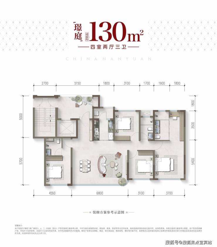 建面约130平套四