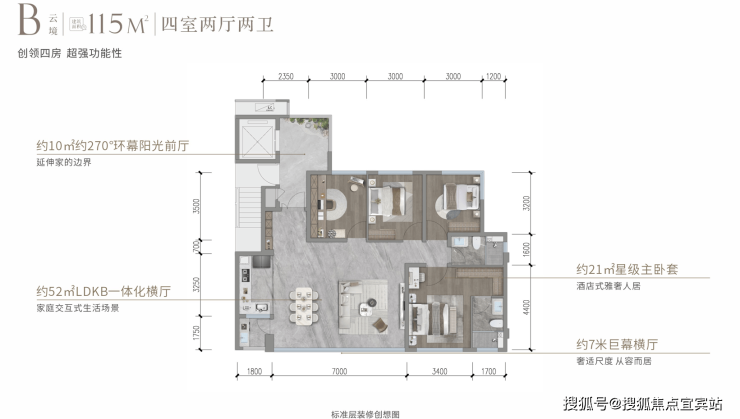 建面约115平套四