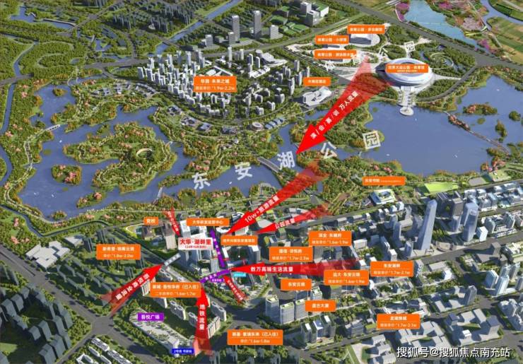 演唱会带动大量人流,东安生态旅游圈,吸附来自世界各地的游客(约5200亩东安湖+东安阁+大剧院+艺术中心等,未来城东文化旅游网红打卡地虹吸全城人潮);