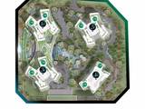 水中独岛,组团藏于双湾之中。水上独岛由一条小路分割成两个水中半岛,组团真三面临水