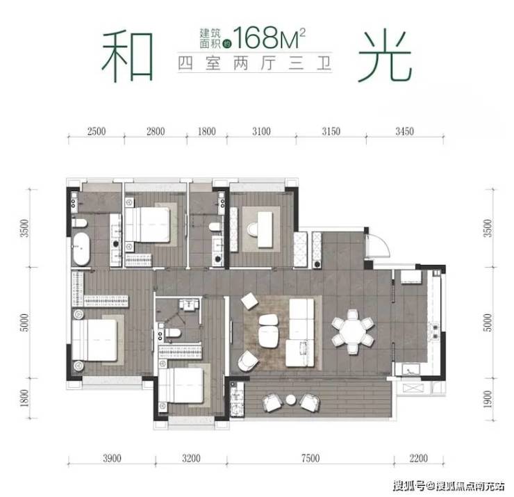 标准层高 3.15 米,媲美顶豪标准。有 138㎡四室两厅两卫、168㎡四室两厅三卫、175㎡四室两厅三卫等多种户型可供选择。