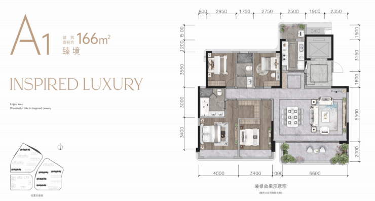 :有建面约 166-188㎡的精装大平层(17F 小高层,2T2 户)和建面约 197-327㎡的叠拼。
