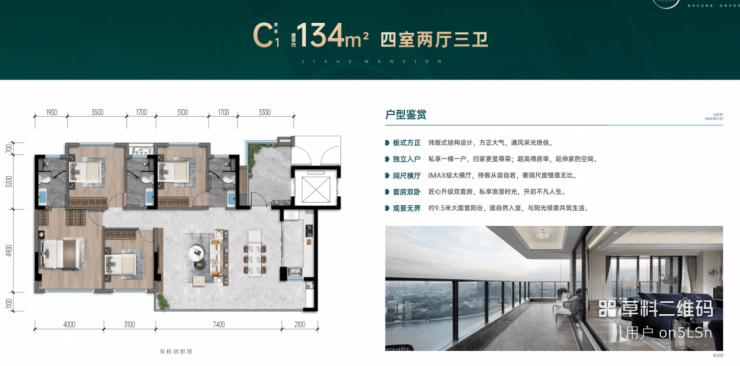 134㎡四室两厅三卫电梯入户带入户花园,9.5米大面宽阳台;