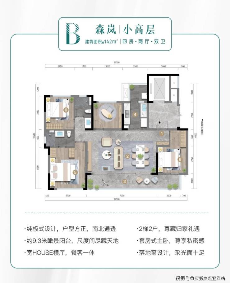 建面约142平套四