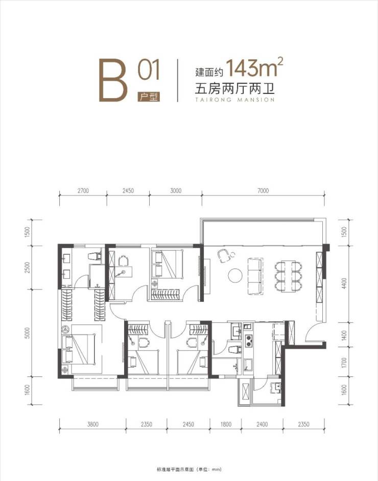 建面约143平套四