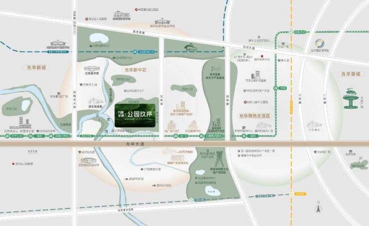 项目位于成都市温江区,地处光华大道贵脉,是城西黄金主轴的重要节点。在成都市“十四五”规划中,青羊新城被定位为成都七大城市副中心之一,而马厂坝片区更是青羊新城的新中心,凭借其TOD一体化设计与大健康产业定位,正成为城西发展的新引擎。龙湖公园玖序便坐落于这片充满潜力与活力的土地上,以高奢酒店会所的设计理念,匠筑约75亩低密社区,为城市精英打造了一个理想的生活空间。