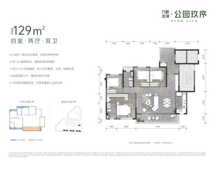 户型面积:建面:129-143㎡ 4室2厅2卫