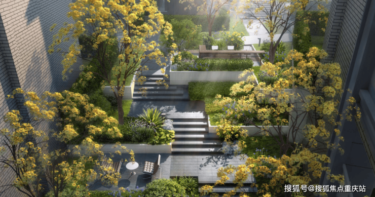 园林打造上,龙湖天府原著也利用台地地形,使景观更加具备层次感。