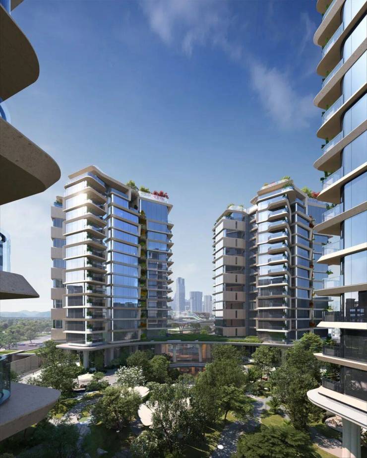 让大部分业主得到了坐到屋头就「直面约350米的交子云塔」和「从120米到350米逐渐爬升的立体波浪天际线视野。」