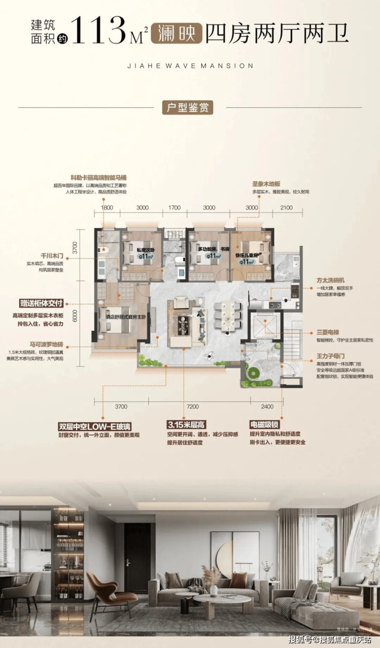 得房率高达115%,加之3.15米层高,空间奢阔;