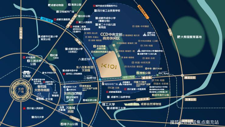 二八板块是成都“七大副中心”之一,定位成都CCD中央文创商务休闲区。K101是二八板块87亩超大规模纯商业用地,30亿巨资打造27万平米中国公园城市商业综合体。对标新加坡机场“星耀樟宜“世界地标商业的定位,西部文创之芯。
