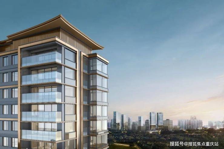 延续了保利“悦”字系玉琮纹理的立面设计美学,冠顶部分提取东方传统凤鸟翼形态,整体结合在地化的川西特色穿斗建筑,点缀香槟色铝板,增强视觉层次。