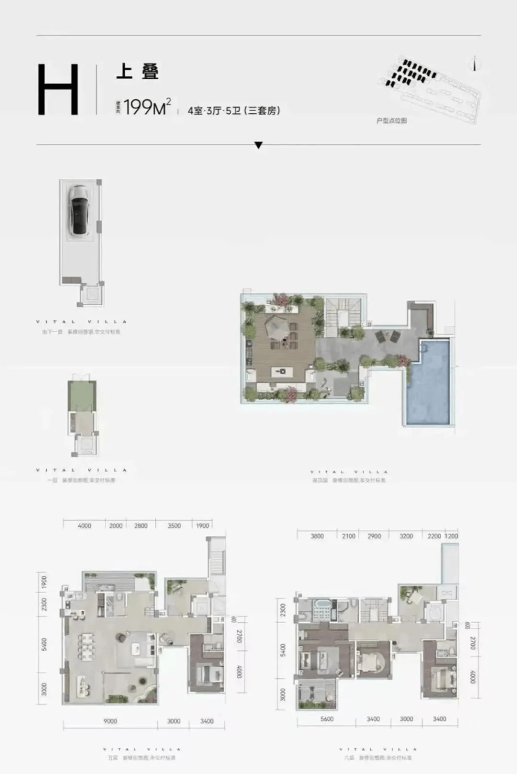 第一,天宸上院”四代墅“上中下叠的每一套房源全都是独栋化设计