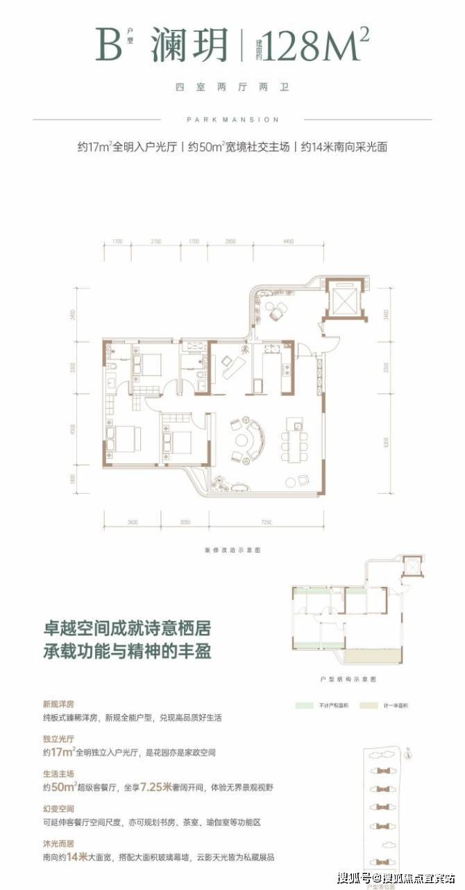 户型鉴赏:建面约128平套四