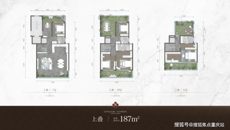 约187㎡的上叠户型,则是做到了主卧分层,充分保障了家庭的隐私性与独立性。