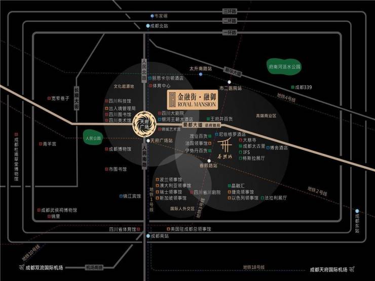交通方面,主要地铁线路和主要干道都环绕于此;医疗方面,则有市二医院、市三医院、四川大学华西医院等;另外,项目周边还有王府井百货、茂业百货、天府广场、省科技馆等商业和市政配套。
