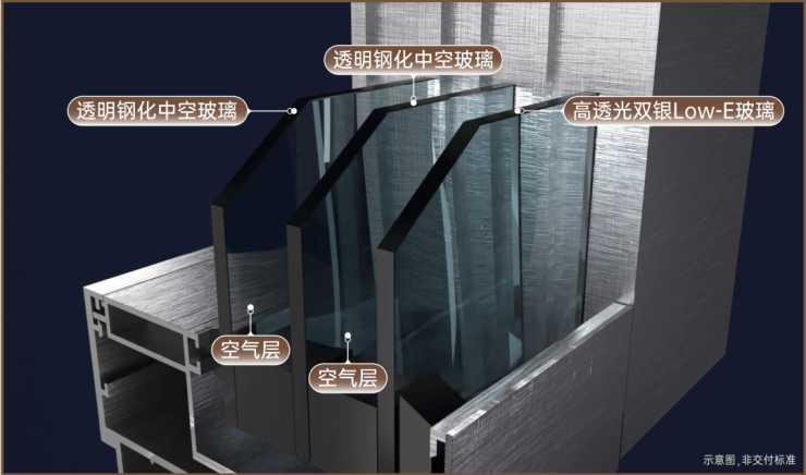达到约0.36,远超0.25的市场标准。为了提升居住体验,它不惜全系采用三玻两腔门窗系统。在成都,三玻两腔是成都千万级豪宅常采用的门窗工艺。相比常规项目,它能将噪声隔绝提升约10.44%、紫外线透过率下降约63.85%,体感非常明显,当然成本也是常规项目的1.3倍左右。但在龙湖看来,这是好房子必须具备的品质。不仅如此,项目还增加了三玻两腔系统的覆盖范围与面积——和多数项目仅用于客厅与主卧不同,它对次卧的窗墙也进行了升级,照顾到每一位家庭成员的居住体验。