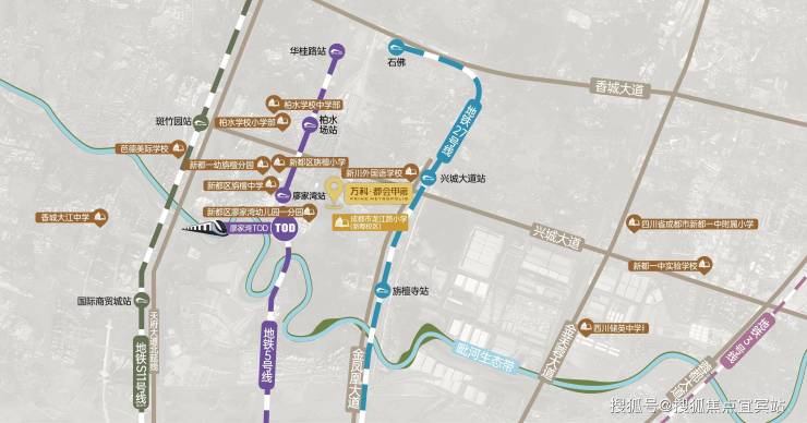 交通上,项目以西约500m即地铁5号线廖家湾站,成都南北“生命线”之一,可直达金融城、大源、锦城湖等城南上班稠密区。