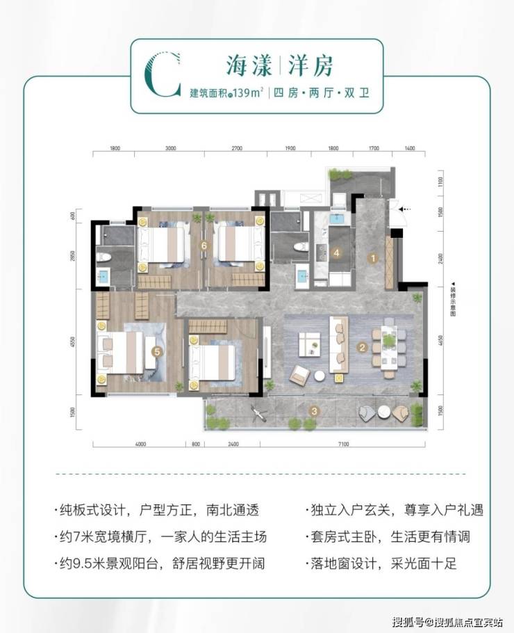 建面约139平套四