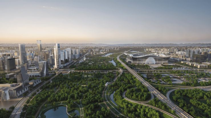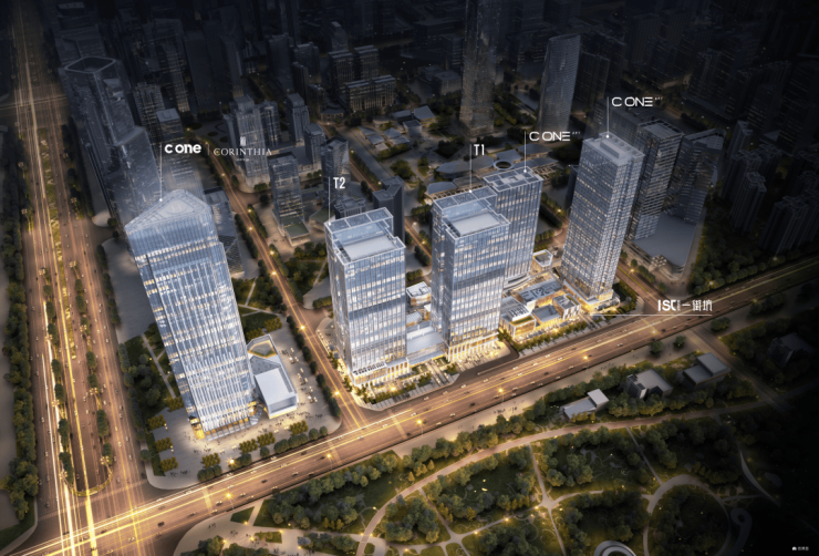 总建筑面积约60万平米,包含公园环幕奢装大平层、超甲写字楼、公园艺术商业街区、都市度假顶奢酒店四大业态。