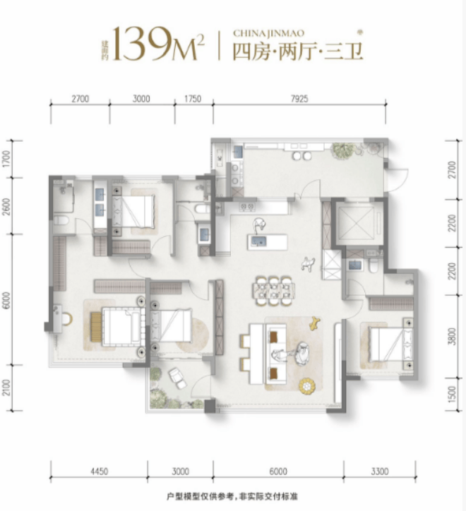 建面约139平套四