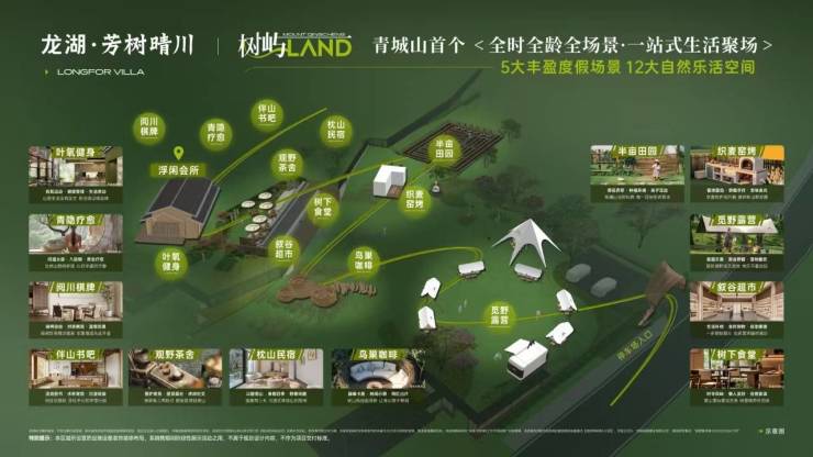 以1000平自然乐活场域,串联自然疗愈康养社交度假等生活向往,全时全龄青城山度假叠院