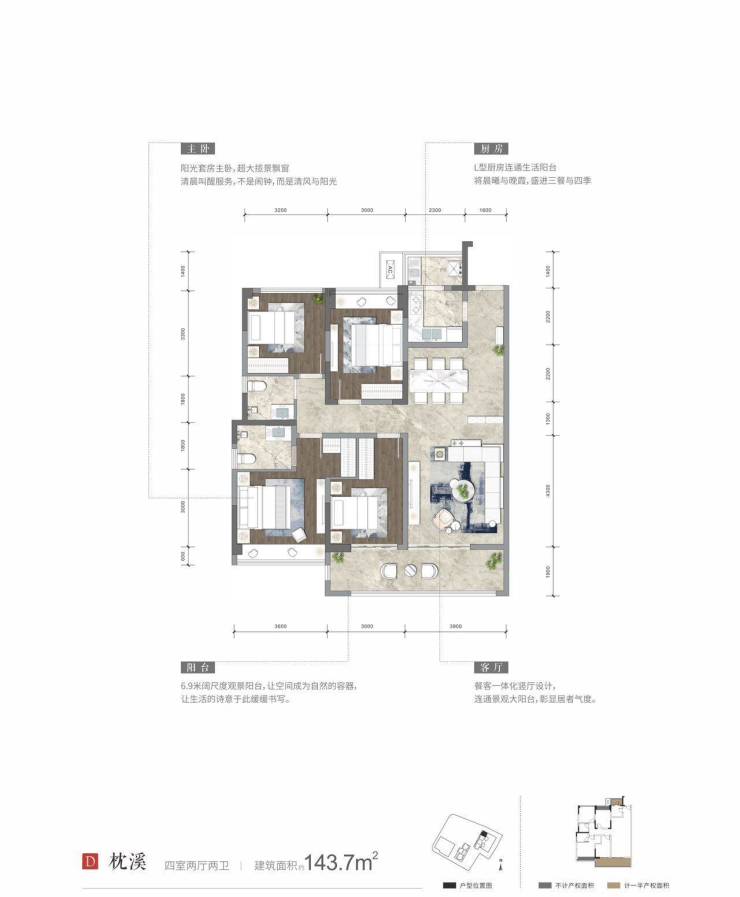 建面约143平套三