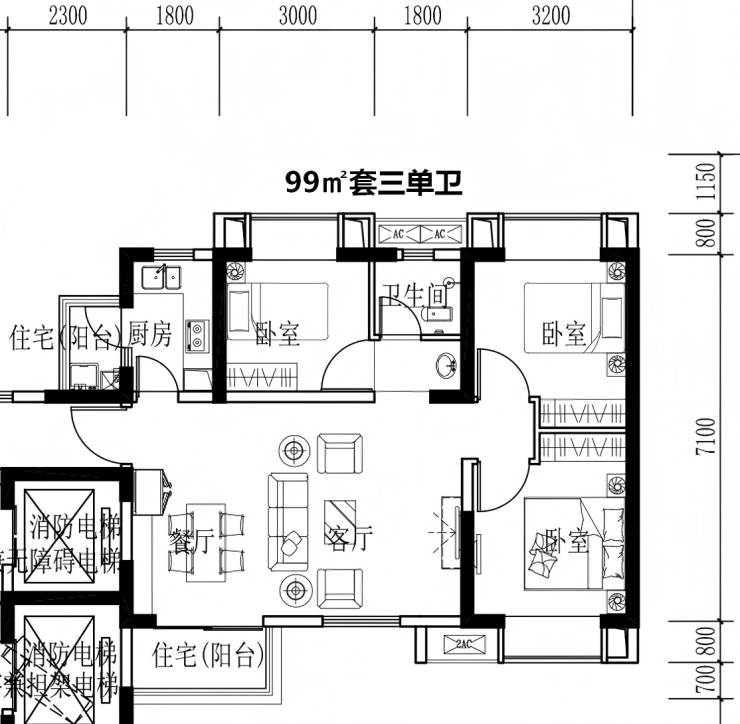 【面积】74㎡79㎡84㎡(套二单卫)、99㎡104㎡(套三单卫)、108㎡119㎡(套三双卫)