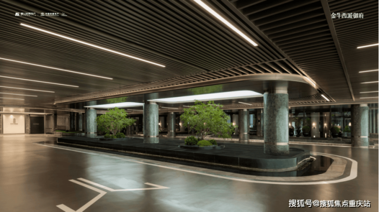 地上、地下双层归家体系:在传统归家主大门、驾车归家两个动线的基础上,在大门右侧设置了一个“车马院”落客区,用于访客车辆与出租车、网约车的临时停靠,进一步强调归家私密性和仪式感。负一楼的“车马院”落客区设计与下沉会所无缝衔接,精致的氛围营造,极大的提升了住户的尊崇感。