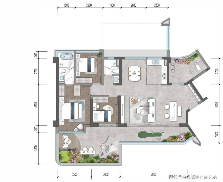 · 超大横厅直连+空中花园,尊享墅级舒居尺度;