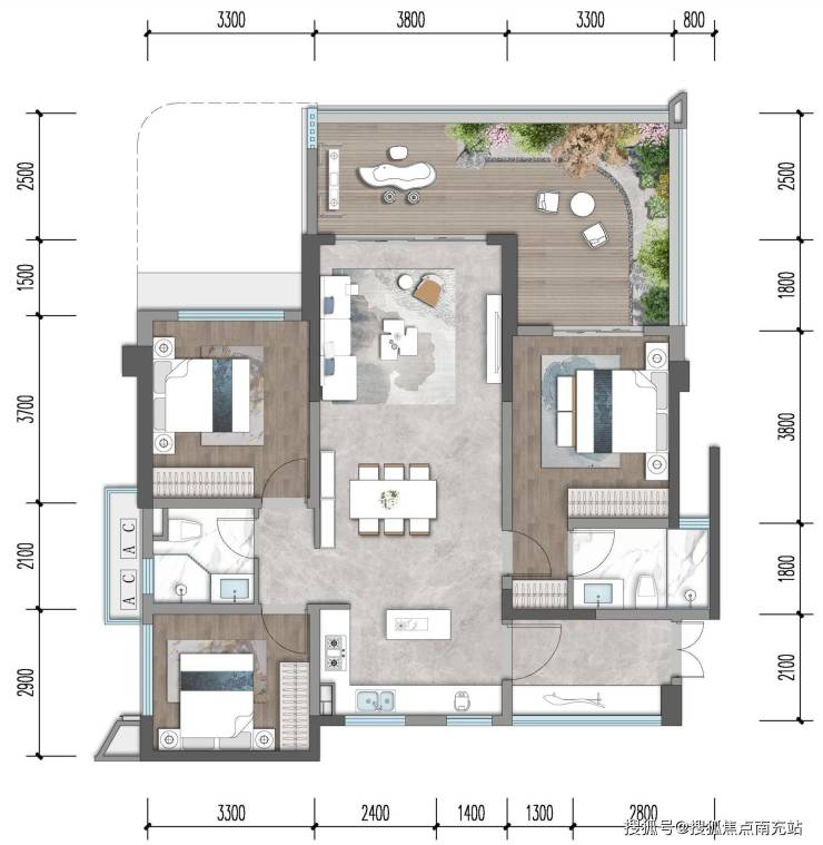· 南向13.5m长的跑道级空中花园,面积40余平米;