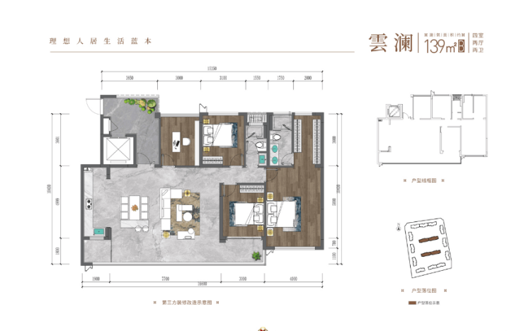 建面约139平套四