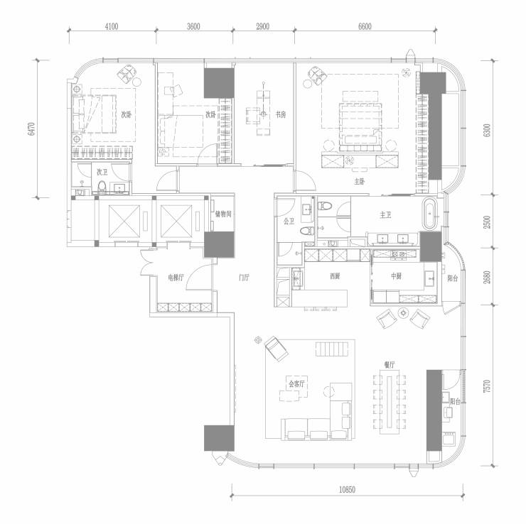 ▪️ 310-370㎡四房:阔绰横厅+双主卧套房,空中花园+巨幕采光,自住宴请皆可