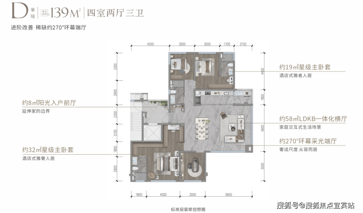 源自高端度假酒店灵感,东西超200米、南北超150米景观轴,呈现四幕七境双中庭景观。