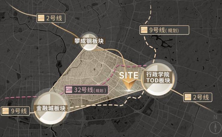 东进黄金三角区,城市高端商务圈+生态公园资源圈。成都东南位置,横向南通金融城,东至行政学院;纵以驿都大道为线,内连攀成钢-东大路,外接绿地468、行政学院TOD,区位优越。