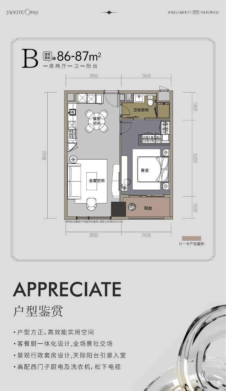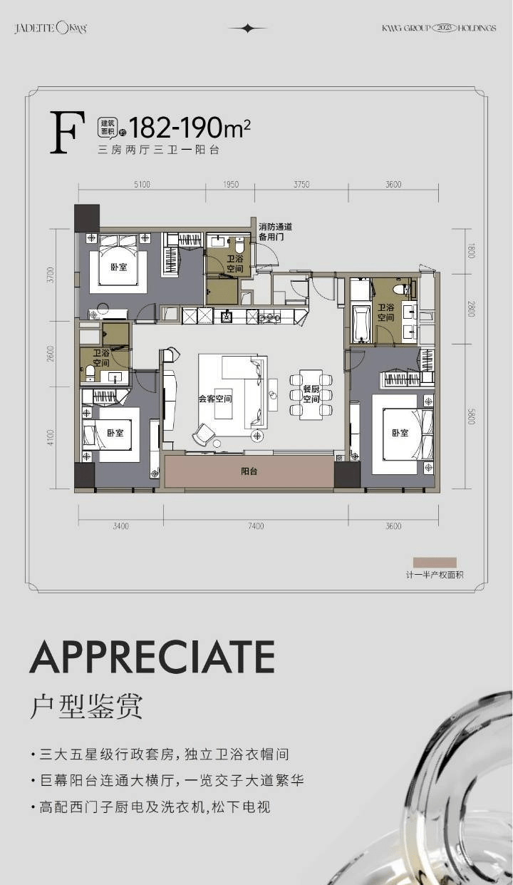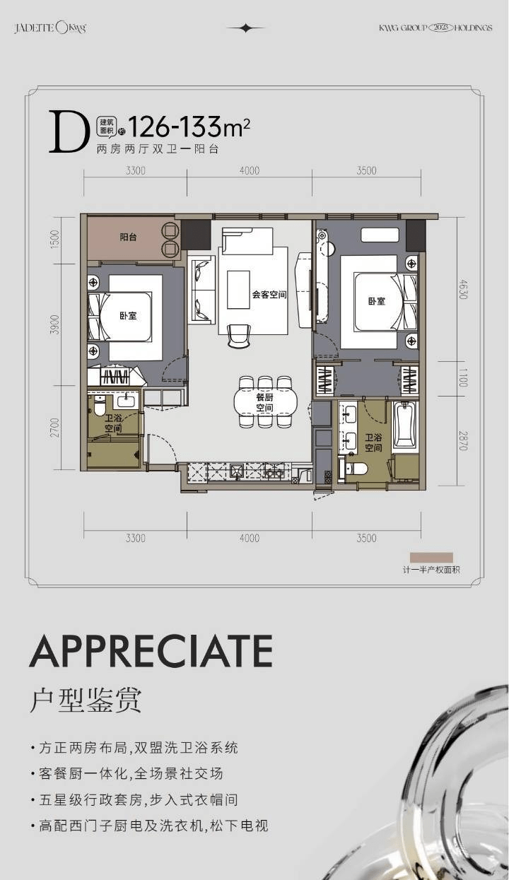 合景J300采用港式现代奢雅风格,外观简约而不失大气,内部装修则更是精益求精。项目拥有超208道精装高奢工艺,全屋采用西门子、弗兰卡、松下等全进口品牌家电及软装,每一个细节都彰显出奢华与品质。此外,项目还设计了全成都罕有的100%全套房户型,超90%的户型含有天际观景阳台,推窗即可尽览交子大道的繁华景象,让人仿佛置身于城市的云端之上。