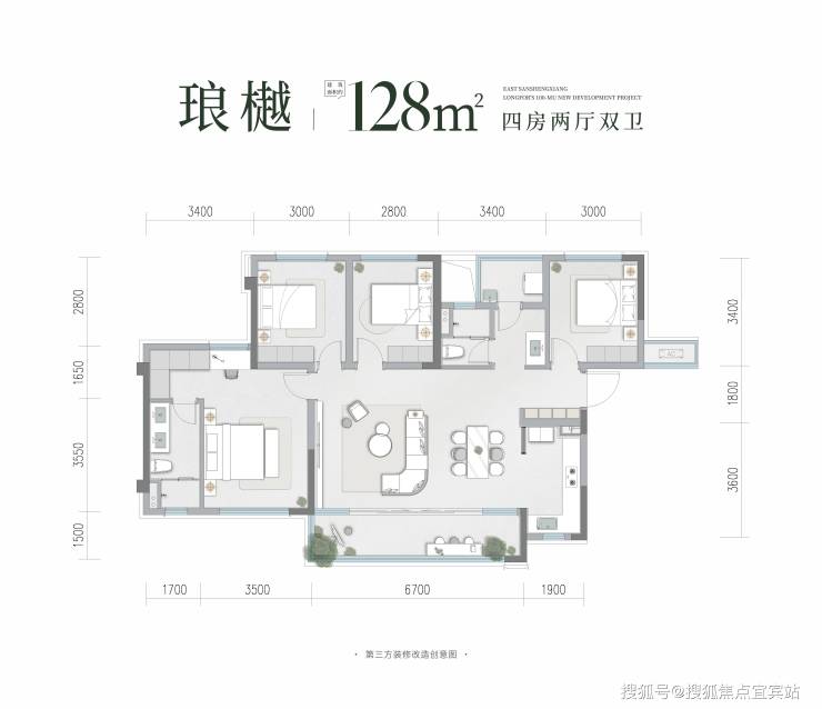 建面约128平套四