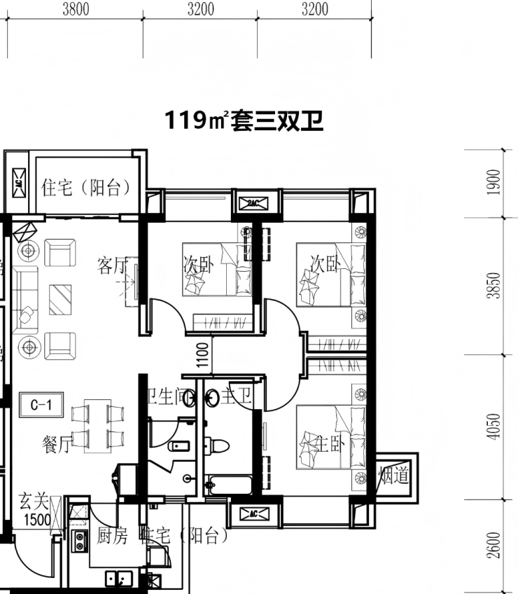 【面积】74㎡79㎡84㎡(套二单卫)、99㎡104㎡(套三单卫)、108㎡119㎡(套三双卫)