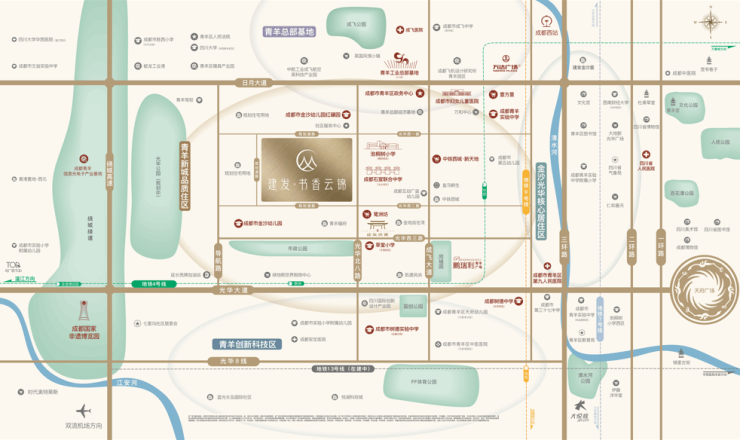 项目位于青羊新城核心的蔡桥板块,毗邻泡桐树小学桐欣校区与石室联中弘文校区,500 米范围内还有草堂小学子美校区等优质教育资源。距地铁 4 号线蔡桥站约 800 米,周边有 “三横三纵” 路网与 5 条规划地铁线,交通便利。