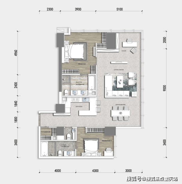 •丰富生活空间,自带五万方商业规划,配有360度无边际露天泳池,打造高端圈层专属生活方式