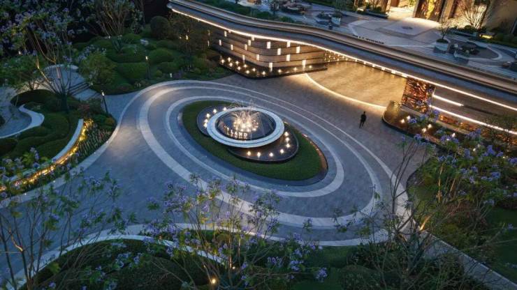 由于项目做了抬高设计,与项目无界相连市政公园入口恰好与下沉庭院无缝衔接,形成“从城市到社区,从繁华到静谧”的渐进式动线。归家之旅,真正成为穿越公园的旅行。流水、树影、花香一路相伴,让外界的喧嚣在踏入社区的瞬间便烟消云散。