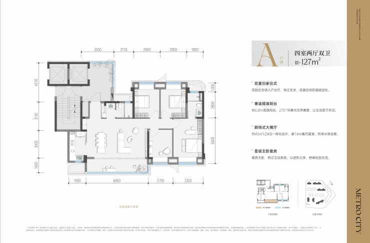 建面约127平套四